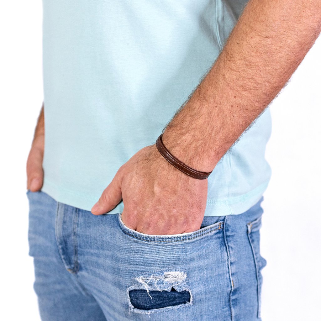 Prošívaná tmavě hnědá kůže a šířka 9 mm vytvářejí poctivý a mužný doplněk.