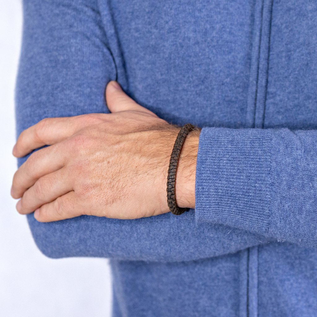 Kulatý profil o průměru 6 mm z tmavé prémiové kůže působí nenápadně luxusně.