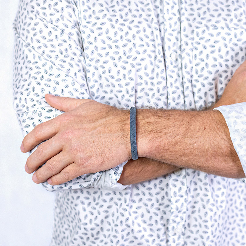 Šedo-modrá prémiová kůže a šířka 8 mm dodávají nenápadný, současný výraz.