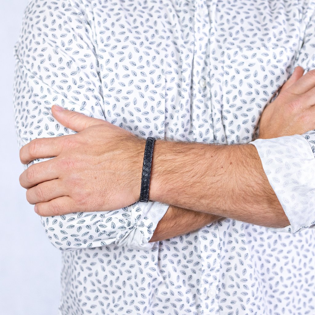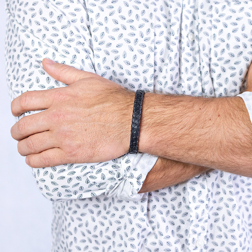 Černá kůže o šířce 9,5 mm vytváří sebevědomý a elegantní doplněk.