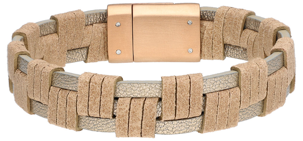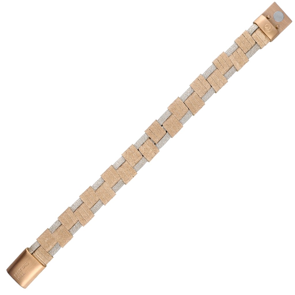 Růžovo-stříbrné tóny, pletený design a prémiová kůže pro jemný, moderní výraz.