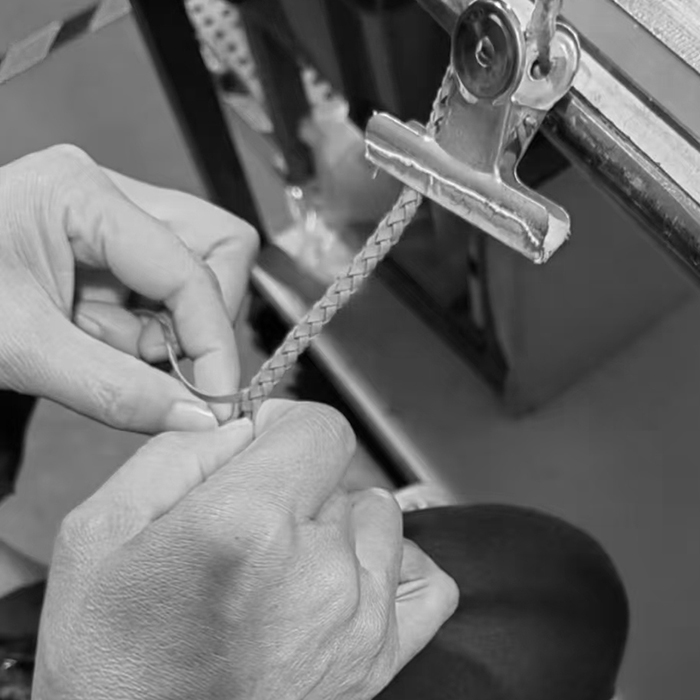 Skrytá preciznost v místě spony drží kůži pevně piny.